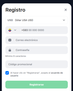 Ingresa el código promocional “1WappEC” para obtener un bono de bienvenida