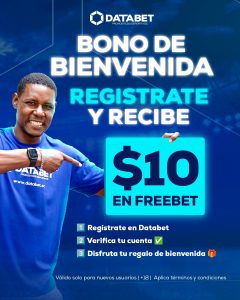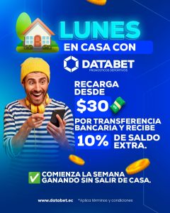 Al momento de registrarte en Databet ingresa el código promocional “DatabetappEC” y aumenta el límite en tu bono de bienvenida.